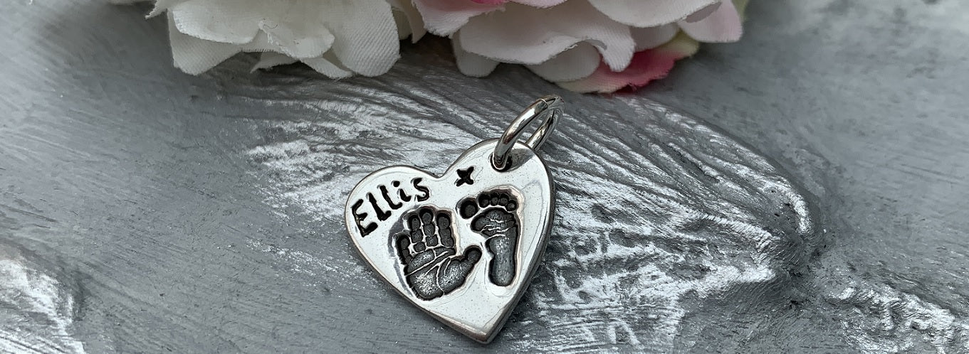 A beautiful handcrafted bespoke range of sterling silver hand and footprint jewellery created using your loved ones prints. Simply choose your design and an easy no mess print kit with instructions will be posted out with every order. The prints are miniaturised to fit the charm enabling all ages and sizes of prints to be used. Your finished piece will be gift wrapped and ready for you or loved one to wear and treasure.